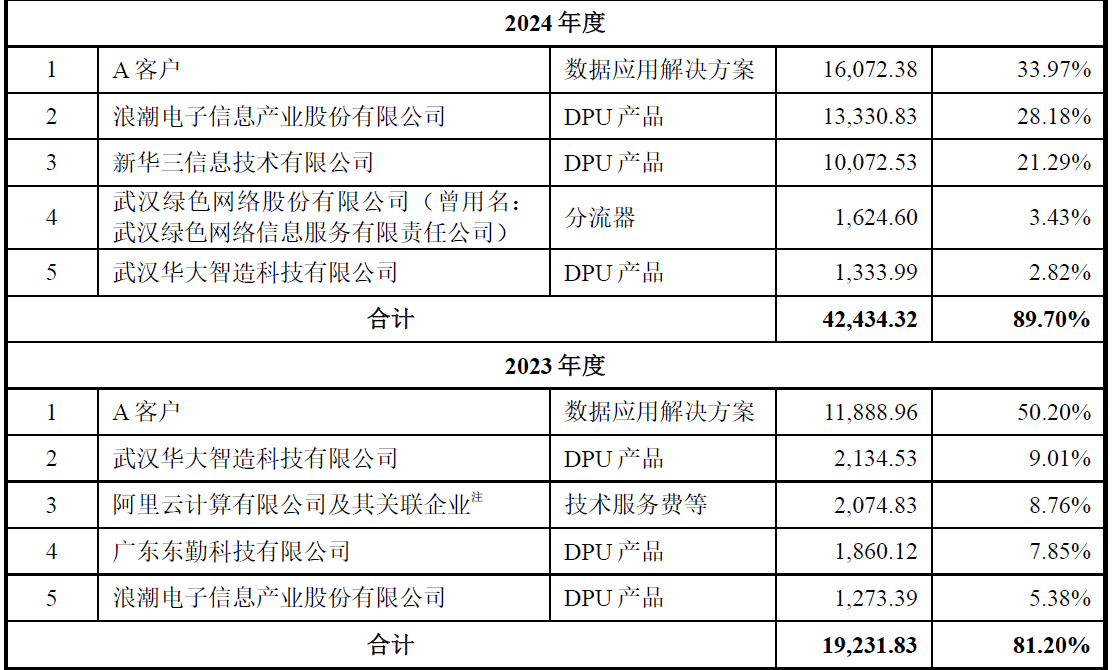 另一个 “关键角色” 是A客户。恒扬数据为其提供数据应用一体化解决方案服务,2023年和2024年,A客户均为公司第一大直接客户。