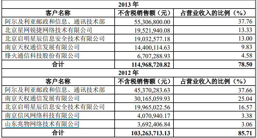 界面新闻翻阅恒扬数据历史上在新三板挂牌的信息发现,公司在2012年和2013年第一大客户均为阿尔及利亚邮政和信息、通讯技术部,阿尔及利亚地处非洲西北部,GDP位居非洲第三,符合公司公告中对于A客户的描述。