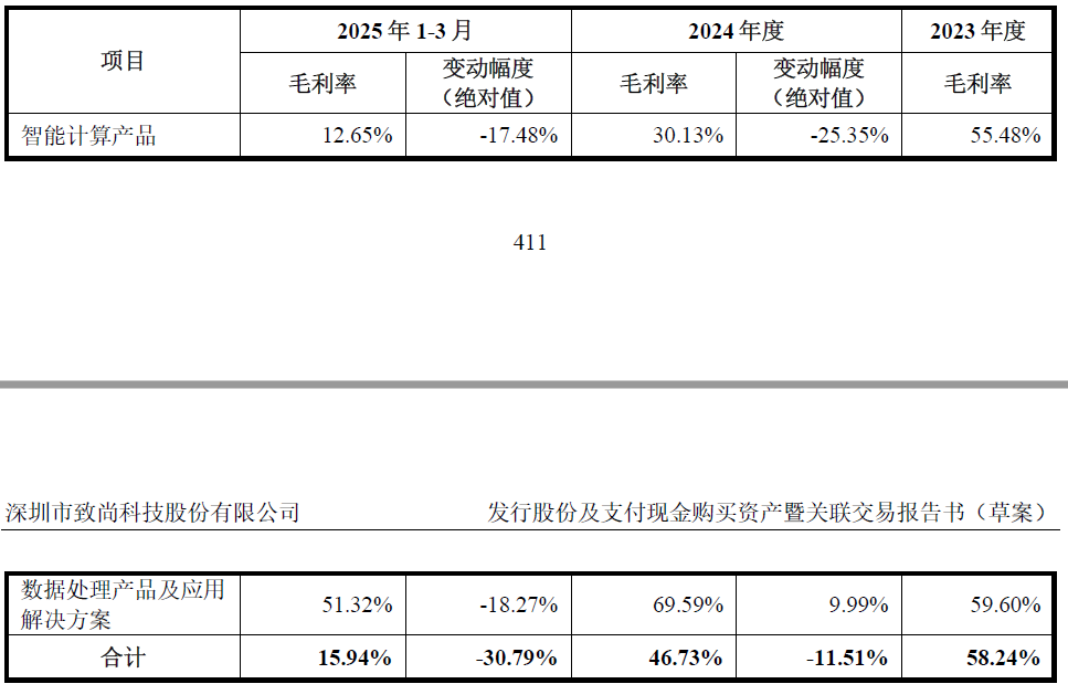 界面新闻进一步拆分发现,数据处理产品及应用解决方案毛利率有一定波动,真“拖后腿”的是智能计算产品,其毛利率从2023年的55.48%降至2024年的30.13%,到2025年第一季度下降至12.65%。